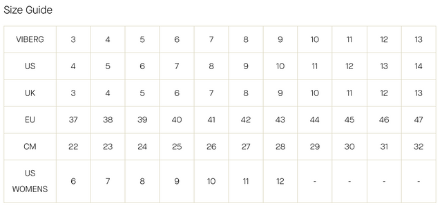 In the US & Canada, Viberg Boots size differently so we recommend sizing down 1 full size, or if you have wide feet, 1/2 a size down. Unless noted, all widths are size E.